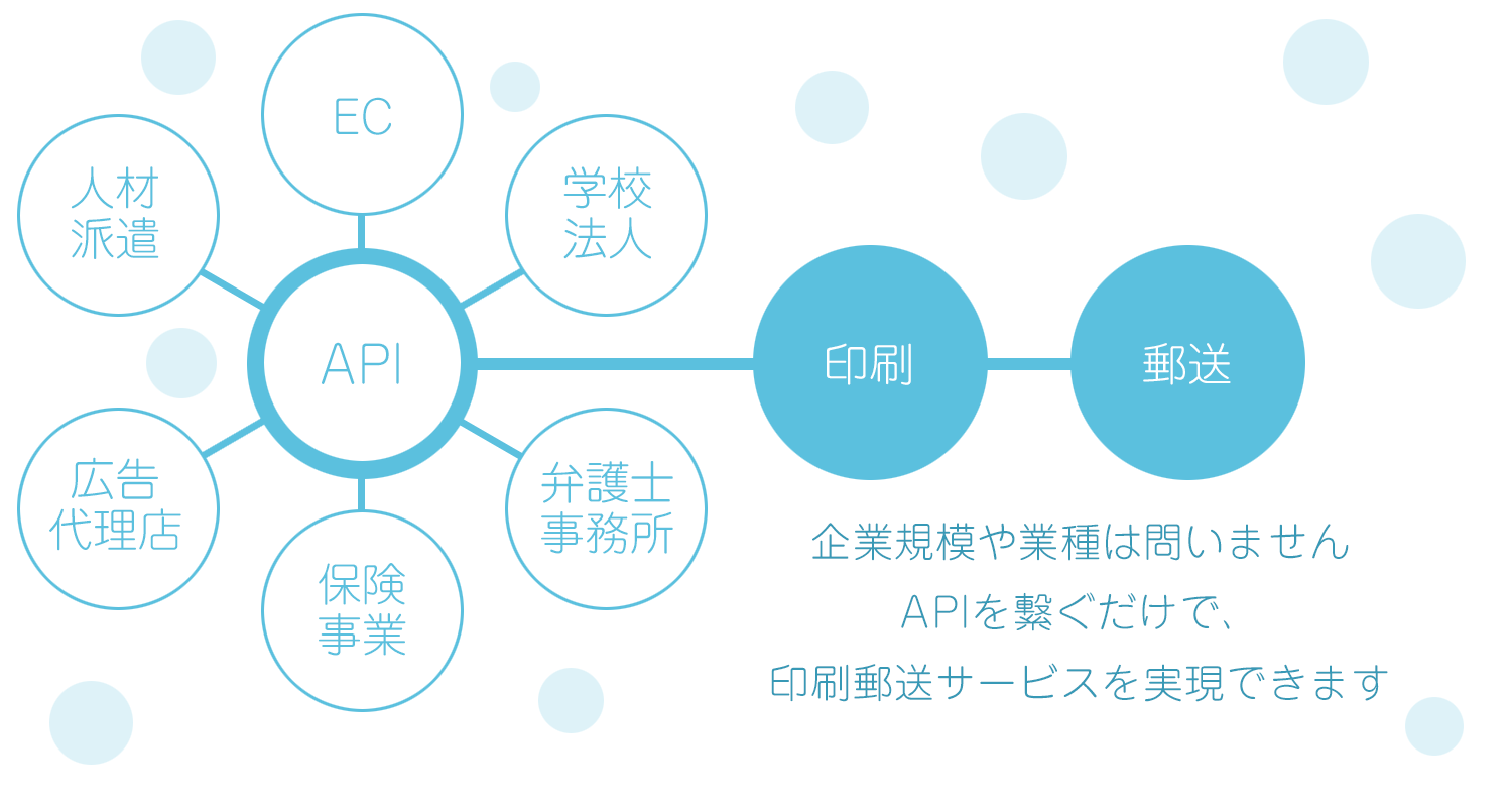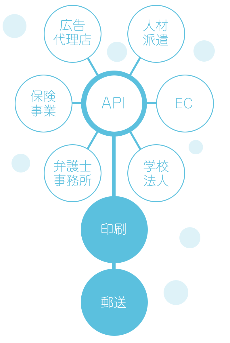 企業規模や業種は問いませんAPIを繋ぐだけで、印刷郵送サービスを実現できます
