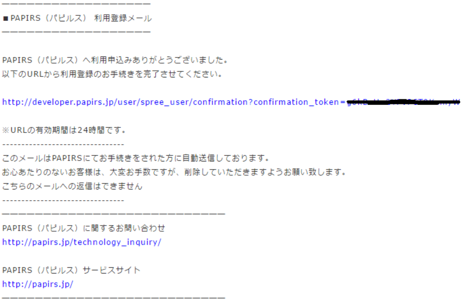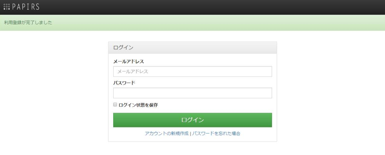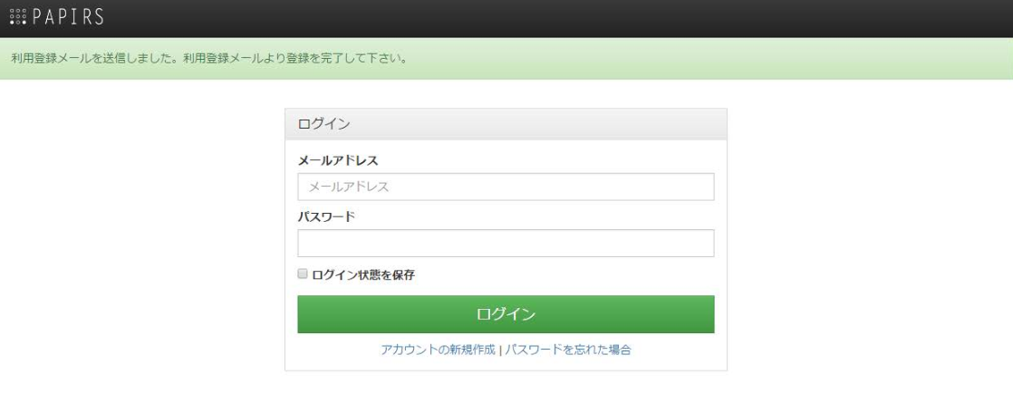 ※利用登録メールが受信できない場合、「papirs.jp」ドメインからのメールを拒否していないかご確認下さい。