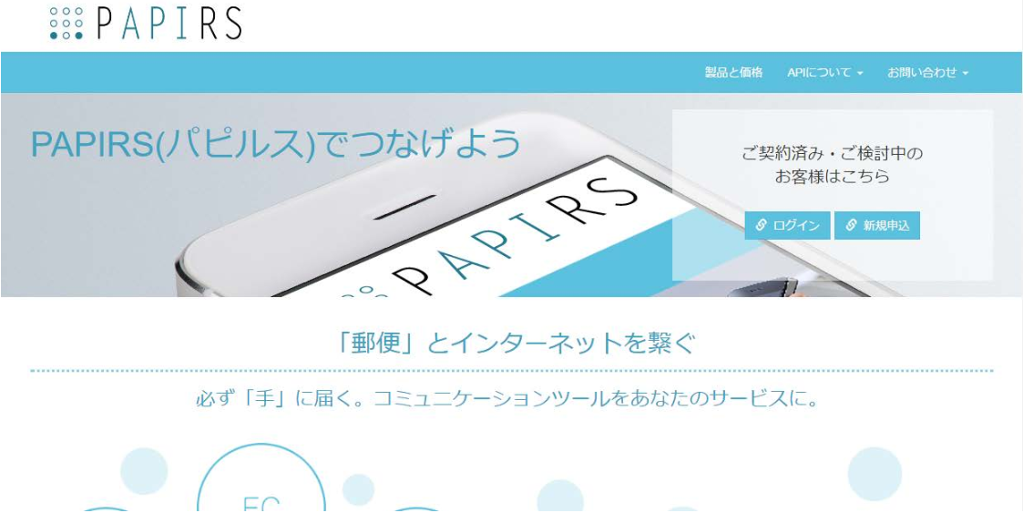 ①パピルスの製品ページ(https://papirs.jp/)の「ご契約済み・ご検討中のお客様はこちら」にある「新規申込」ボタンをクリックします。
