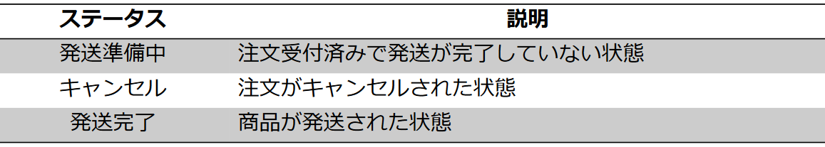 利用履歴ページでは、注文日、注文番号、注文状態、宛名、注文金額が確認できます。
